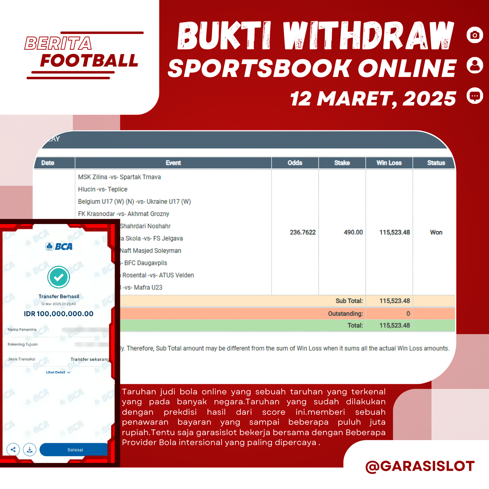Selamat Kepada Id :ID ANGGU***583 Atas Withdraw Rp 100.000.000 Juta Hari ini. Ditunggu Withdraw Selanjutnya dan ajak juga teman temannya bergabung di GARASISLOT