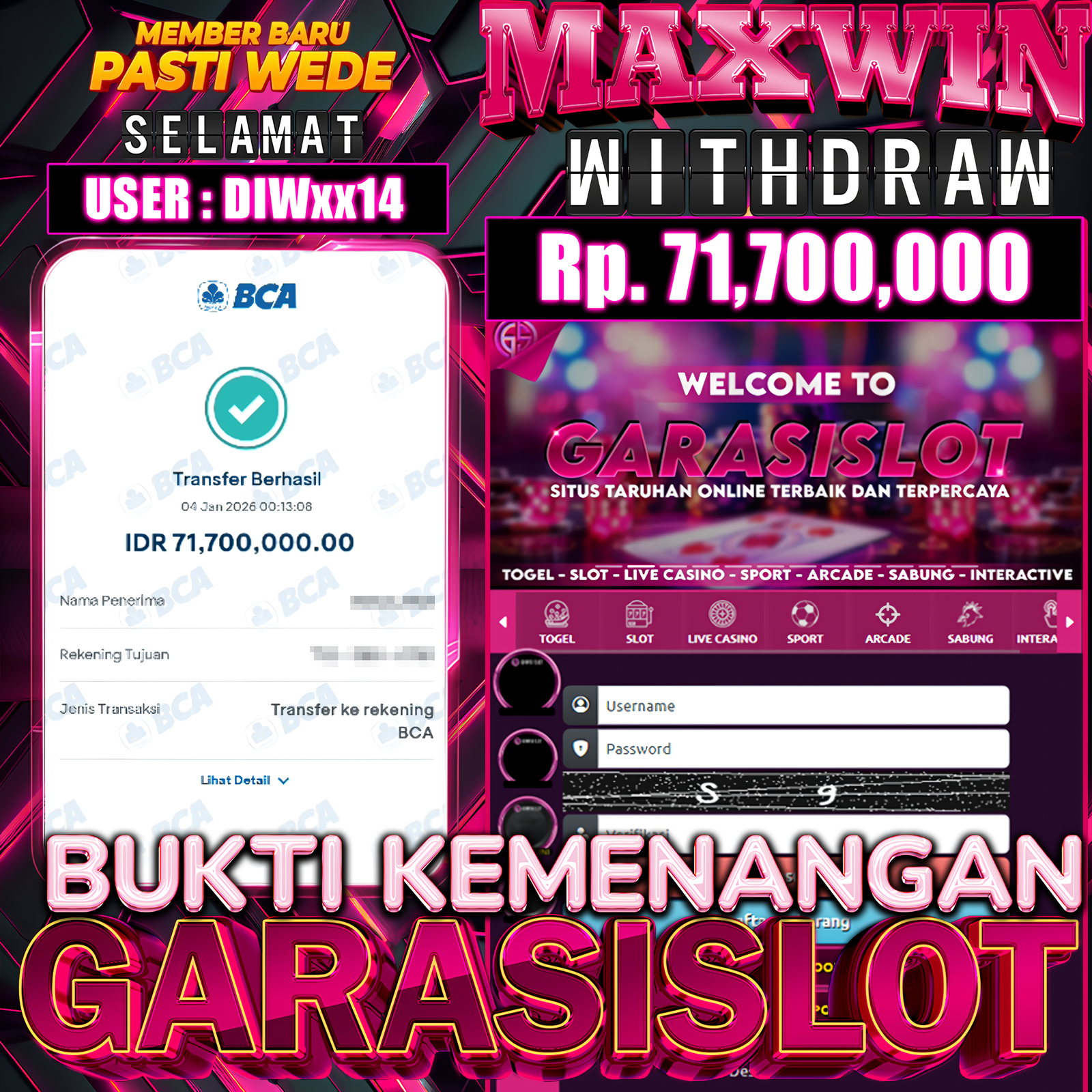 Fitur utama yang dicari pemain Garasislot adalah Super Scatter Bonus dan Wild Symbols. Ketika simbol scatter muncul dalam jumlah tertentu, pemain akan memicu putaran Super Scatter, yang memberi kesempatan untuk memenangkan free spin dengan pengganda yang sangat tinggi. Wild simbol juga sering muncul, memperbesar peluang untuk menciptakan kombinasi kemenangan yang lebih besar. Pada putaran tertentu, pemain bisa meraih big win, super win, bahkan mega win berkat fitur-fitur ini.