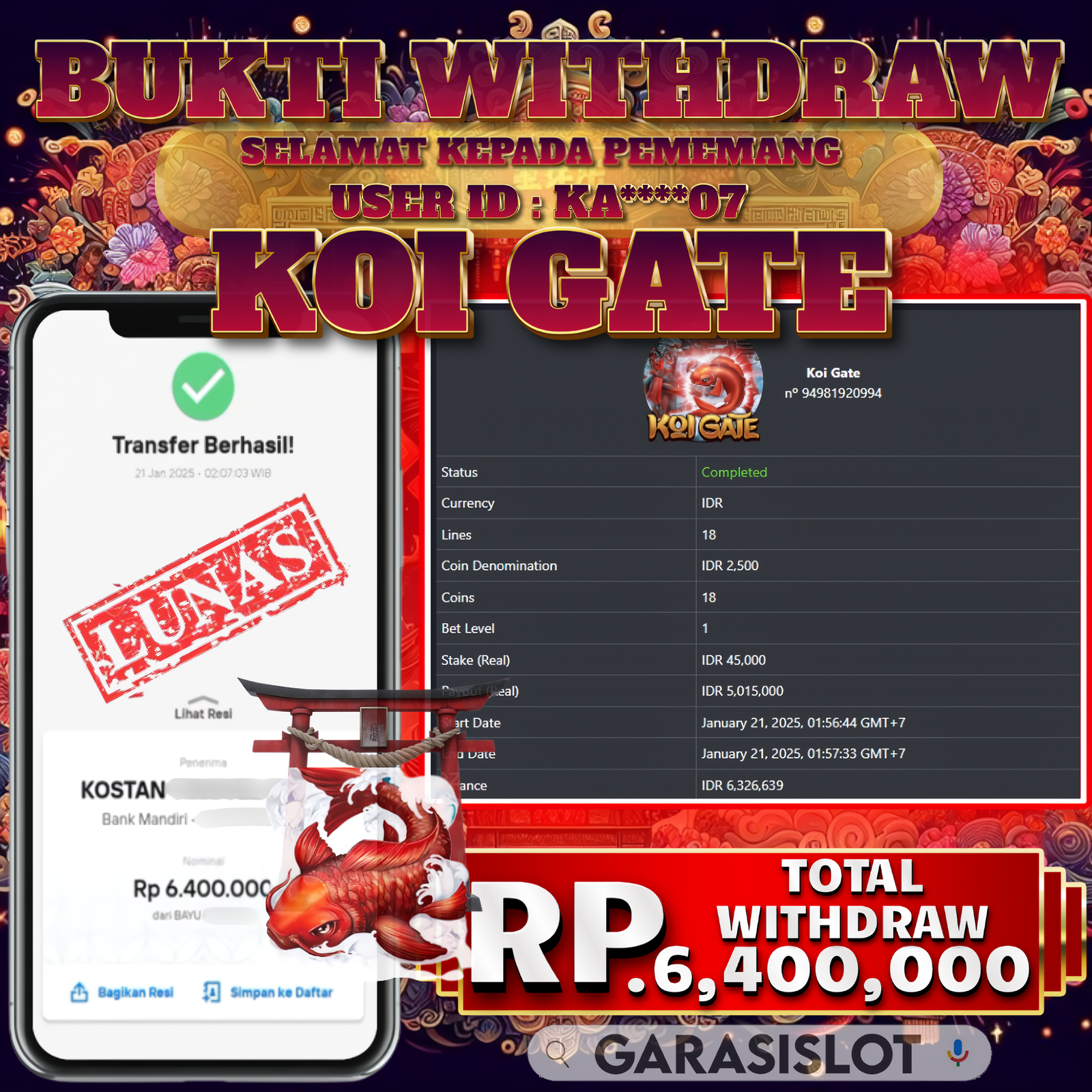 Selamat Kepada Id : KA****07 Atas Withdraw Rp. 6.400.000 Juta Hari ini. Ditunggu Withdraw Selanjutnya dan ajak juga teman temannya bergabung di GARASISLOT GARASISLOT adalah situs game