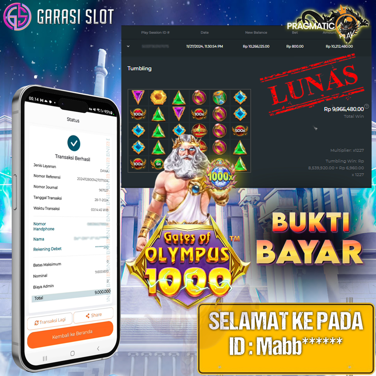Selamat Kepada Id : Mabb****** Atas Withdraw Rp. 9.000.000 Juta Hari ini. Ditunggu Withdraw Selanjutnya dan ajak juga teman temannya bergabung di GARASISLOT GARASISLOT adalah
